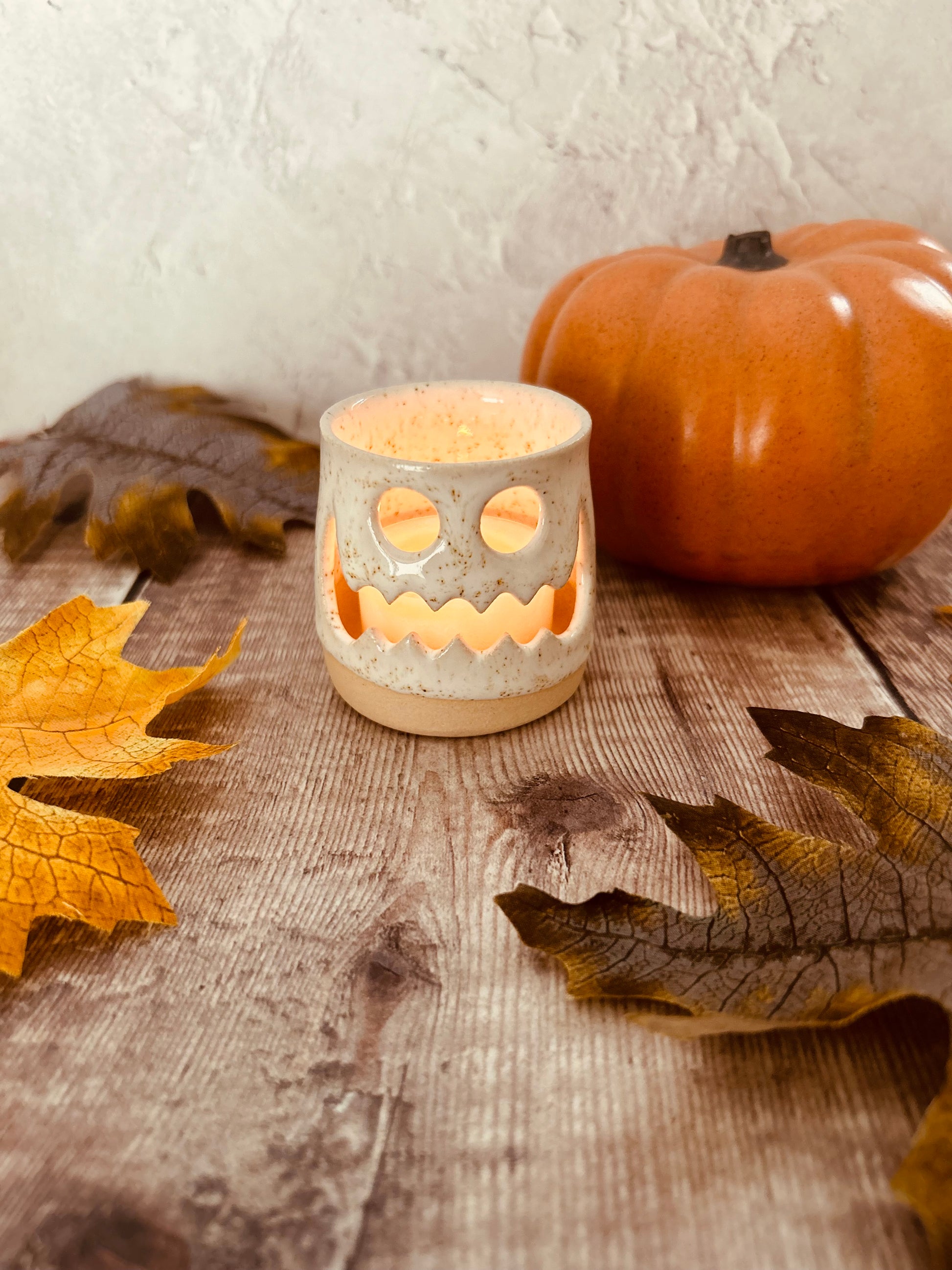 These mini autumn ceramic candle holders are handmade in the Glosters workshop in Porthmadog, North Wales, using high quality stoneware clay and glazes. Due to the handmade nature, each lantern is unique and may differ slightly.